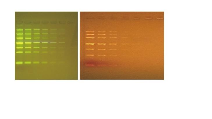 兼容的荧光染料:EB、GeneGreen、GeneRed、GelGreen、GelRed、Goldview等。搭配荧光染料(如GeneGreen),分辨率可达2ng。