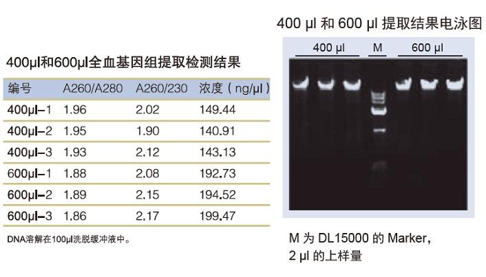 ■ 起始样本量灵活:选择相应的试剂盒可以直接提取200 µl、400 µl、1.2 ml 的全血或通过前处理提取1-3 ml 全血分离白细胞的 DNA。