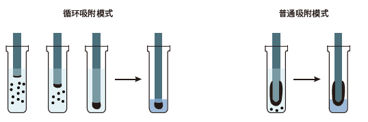 磁珠吸附于磁棒头部,保证小体积洗脱时,洗脱液依旧可覆盖全部磁珠,多次循环,小粒径磁珠也可确保无漏网之鱼。