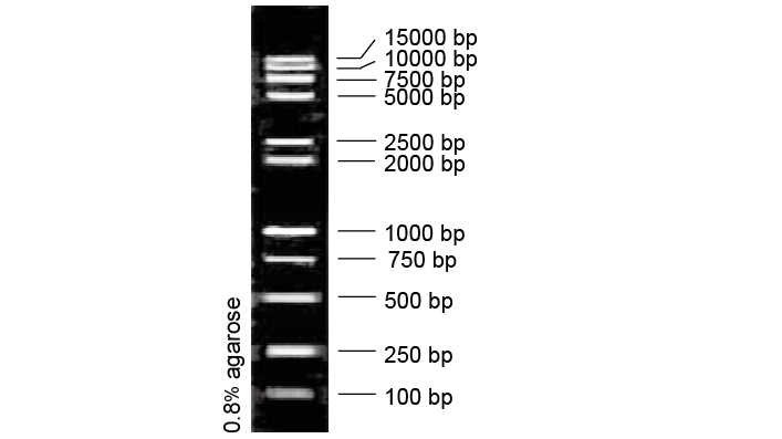 D15000+2000 是由单独制备的 PCR 产物混合而成,共有 11 条 DNA 片段,已加入上样缓冲液,可直接电泳,每次上样 6